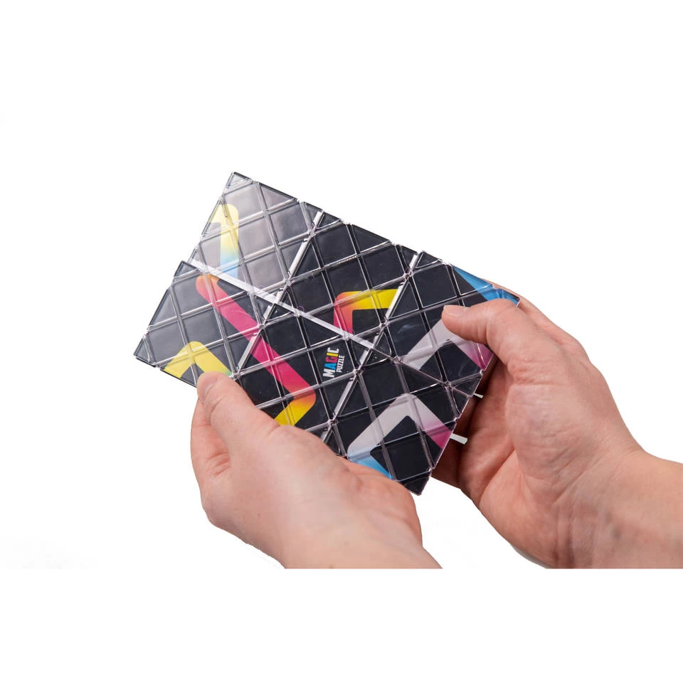 Deze leuke vouwpuzzel is een echte breinbreker! Vouw de puzzel op zo’n manier, dat de rechthoeken van de print helemaal in de war zijn. Nu is het de uitdaging, om de puzzel zo snel mogelijk weer in het originele patroon te puzzelen! Je kunt ook een nieuw patroon in elkaar puzzelen, waarin de 3 rechthoeken in elkaar vallen. Lukt het jou om dit voor elkaar te krijgen? Deze puzzel fidget wordt geleverd in windowbox.